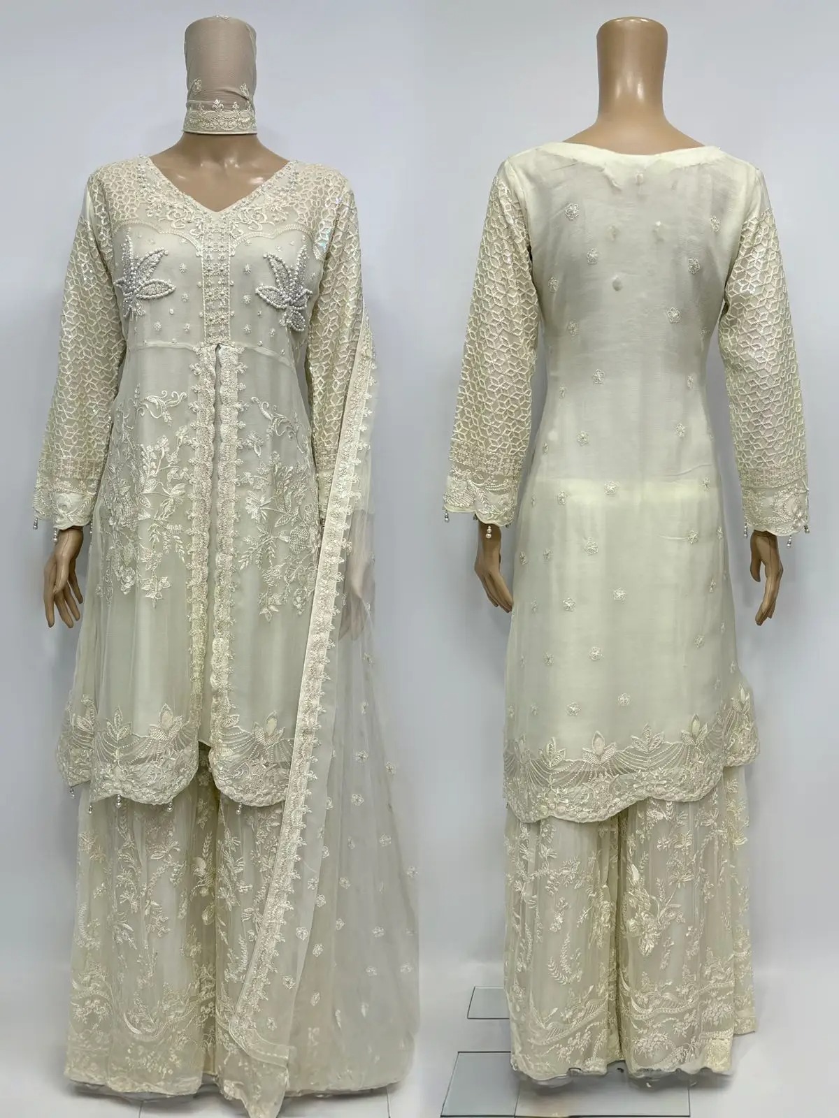 1: Shirt: Chiffon2: Gharara: Chiffon3: Dupatta: Chiffon